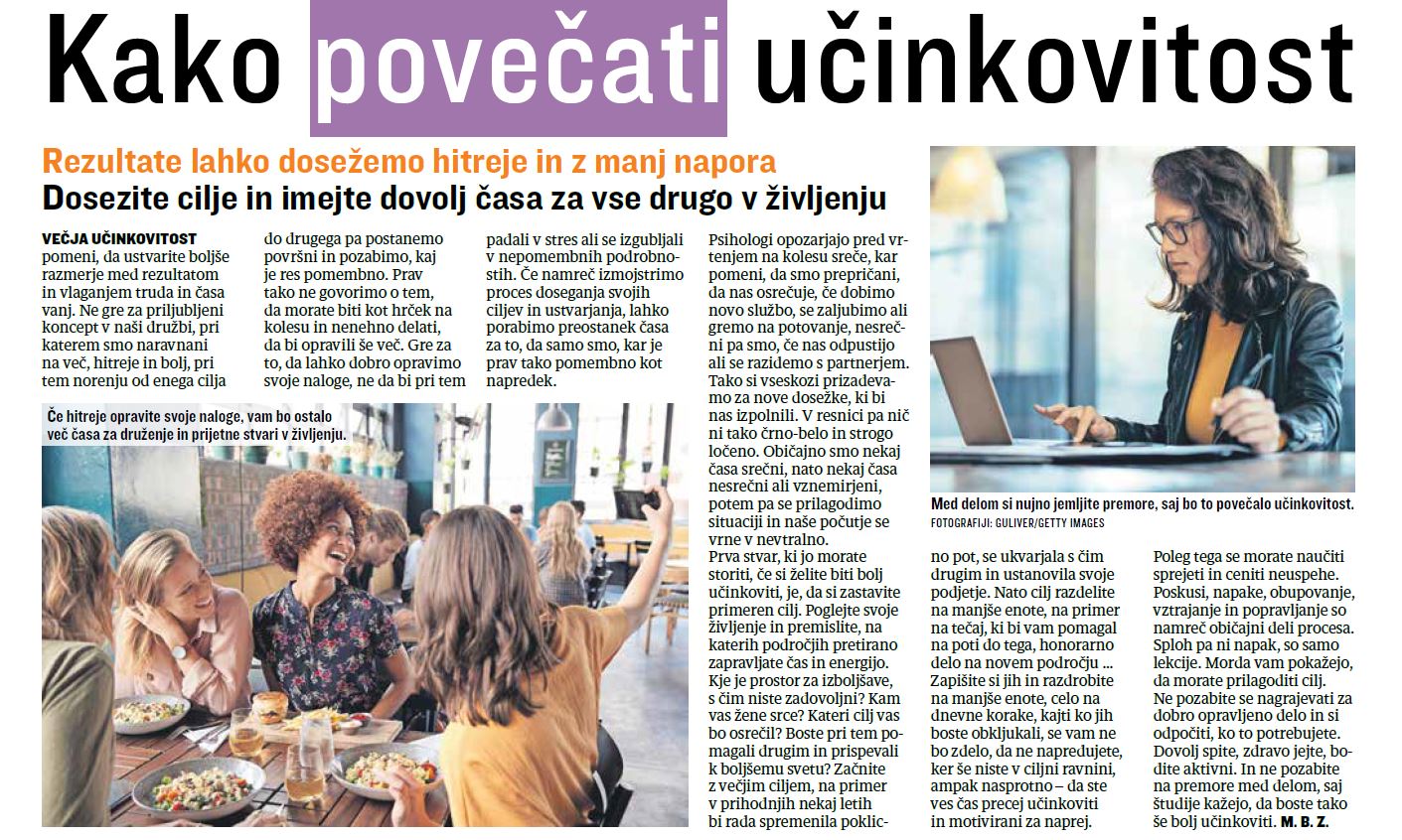 KAKO POVEČATI UČINKOVITOST, 29.03.2021